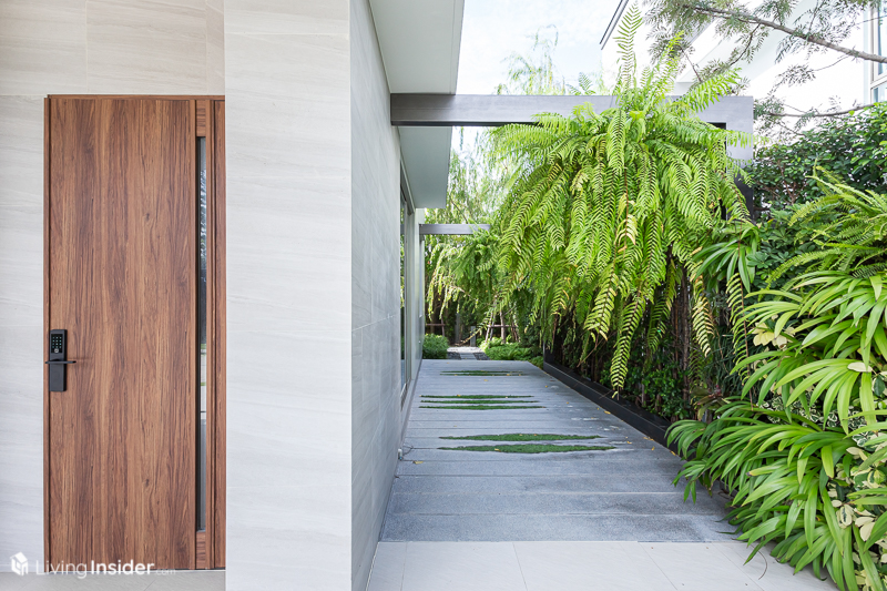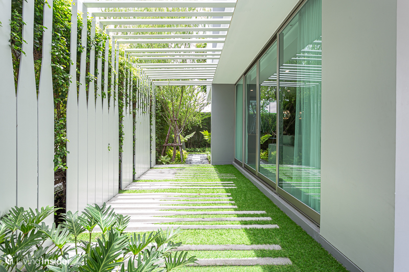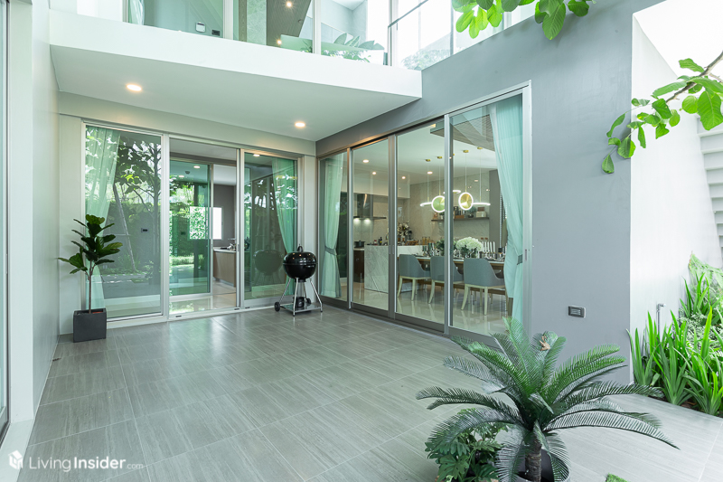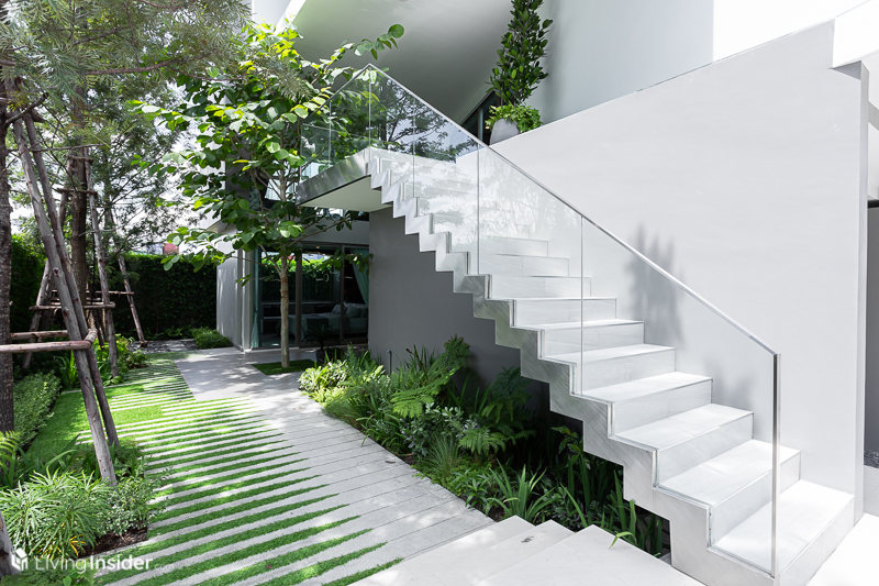 ทางเข้าของบ้านจะเข้าได้ที่ชั้นล่าง ซึ่งเป็น Family Area อย่างห้องรับประทานอาหาร หรือตรงขึ้นไปที่ชั้นสองซึ่งเป็นห้องรับแขกได้เลย นอกจากนี้ยังให้พื้นที่ Outdoor มาค่อนข้างมาก พร้อมกับ Inner Court กลางบ้านเผื่อไว้สำหรับปาร์ตี้สังสรรค์เปลี่ยนบรรยากาศที่ไม่ใช่แค่ในบ้าน ของคนในครอบครัวหรือเพื่อนๆ ที่แวะมาเยี่ยมเยียนได้