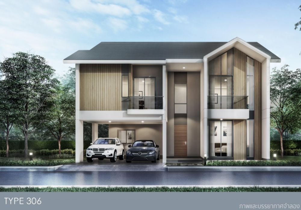 3. แบบ “GABLE306” ขนาดเริ่มต้น 67.9 ตารางวา พื้นที่ใช้สอย 306 ตารางเมตร 4 ห้องนอน 4 ห้องน้ำ 1 ห้องแม่บ้าน 2 ที่จอดรถ มี 37 ยูนิต