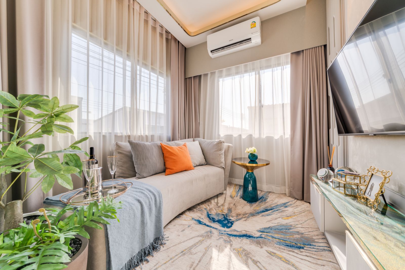 โดยเป็นทาวน์โฮม 2 ชั้น 3 ห้องนอน 2 ห้องน้ำ 2 ที่จอดรถ ได้หน้ากว้าง 5.5 เมตร ที่ดีไซน์ให้ปรับเปลี่ยนได้ตามไลฟ์สไตล์ และสามารถใช้สอยพื้นที่ได้อย่างคุ้มค่าทุกตารางเมตร โดยไม่ลืมคำนึงถึงความโปร่งโล่งสบายของบ้าน เพื่อให้ผู้อยู่อาศัยรู้สึกไม่อึดอัด