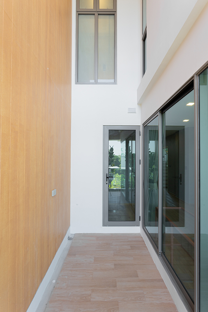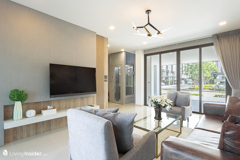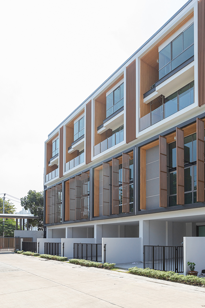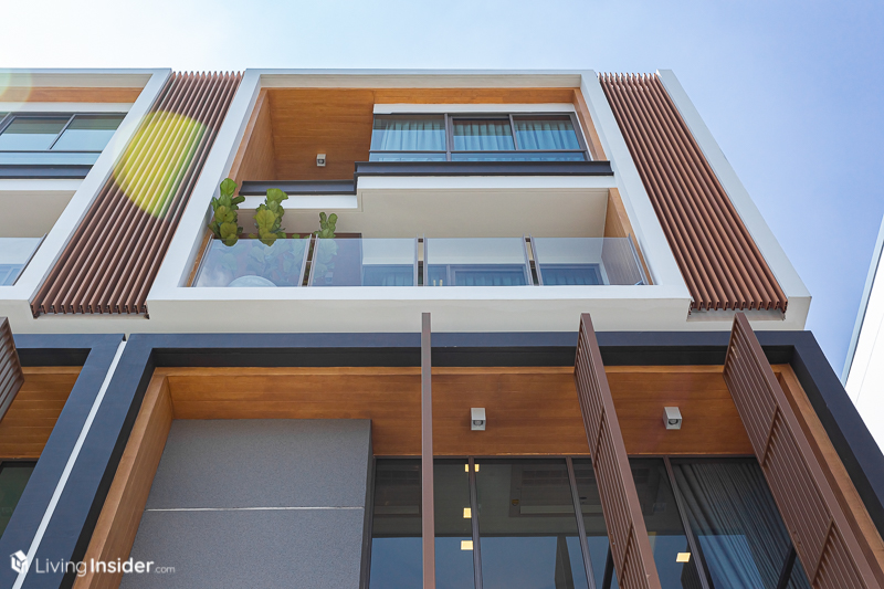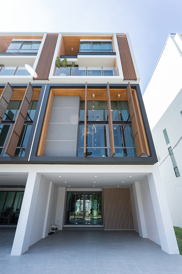 เริ่มตั้งแต่การออกแบบออก แนวสไตล์โมเดิร์นเน้นความเรียบง่าย มีการนำไม้มาเป็นส่วนประกอบในทุกๆ ชั้น รวมถึงใช้ไม้ในการทำระแนงหรือ Fin ไว้บดบังแดดแต่แสงยังสามารถส่องเข้าบ้านได้แบบพอดี รวมถึงลมธรรมชาติที่พัดผ่านเข้ามา ส่งผลให้เกิดการระบายอากาศหมุนเวียนภายในบ้าน อีกข้อดีหนึ่งอย่างอยู่ตรงที่ โครงการสร้างด้วยการก่ออิฐฉาบปูน ทำให้อยากเจาะช่องเพิ่มหรือทำการต่อเติม หรือแม้แต่อยากซื้อสองหลังเพื่อทุบติดกันก็สามารถได้โดยง่าย