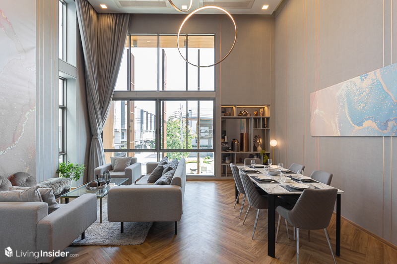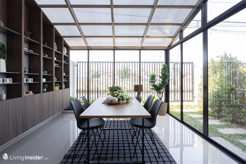 และยังมีพื้นที่เพียงพอให้วางโต๊ะกินข้าว ไว้กินข้าวร่วมกันแบบพร้อมหน้าพร้อมตา สามารถเลือกได้ตั้งแต่ 6-10 ที่นั่ง เพื่อรองรับสำหรับครอบครัวขนาดใหญ่ หรือนัดเพื่อนมาสังสรรค์โดยไม่ต้องเสียตังค์ออกไปใช้พื้นที่ข้างนอก
