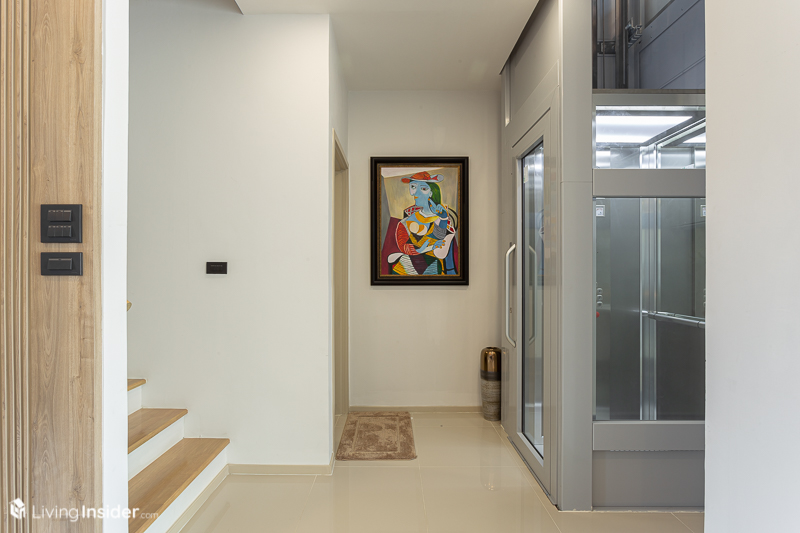 กลับเข้ามาข้างในบ้านที่ชั้นนี้จะมีในส่วนของ Powder Room และมีพื้นที่สำหรับการติดตั้งลิฟต์โดยสารมาให้สำหรับคนที่อยู่ชั้นสูงหรือผู้สูงอายุได้ใช้งาน