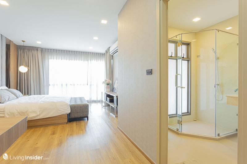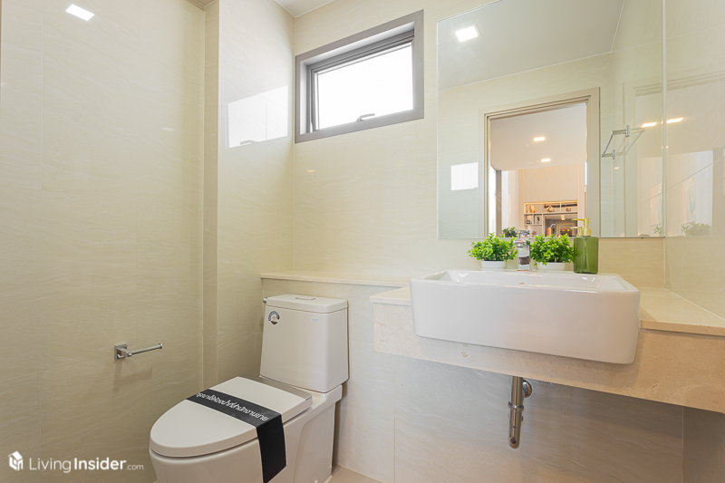 มาพร้อมกับ ช่องแสงเต็มผนังแบบ Bay Window ส่งผลให้ห้องดูกว้างขวางมากกว่าเดิม ซึ่งตรงนี้เราสามารถวางโต๊ะทำงานเพิ่มเติม เพื่อไม่ให้เสียพื้นที่ไปโดยเปล่าประโยชน์นั่นเอง ส่วน ห้องน้ำ เหมือนกับห้องนอนเล็กแต่แตกต่างตรงที่ได้หน้าต่าง เพื่อให้อากาศถ่ายเทได้สะดวก