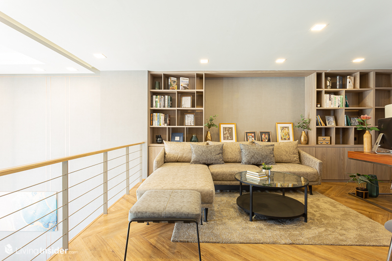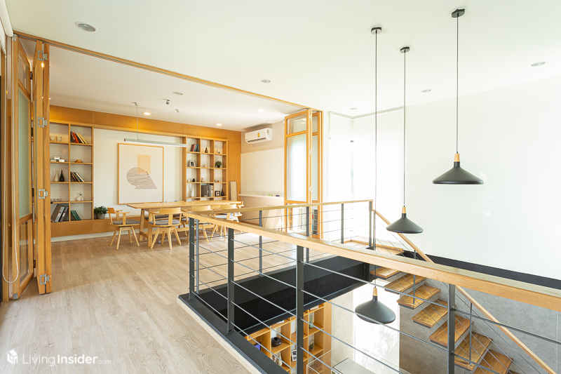 ขึ้นบันไดมาอีกชั้นจะเป็นชั้นลอย ที่ออกแบบได้ทั้งพื้นที่ทำงานของพ่อแม่ ทำเป็นมุมให้เด็กๆ ได้นั่งเล่นกัน หรือเป็นอีกหนึ่งมุมสำหรับ Family Area รวมสมาชิกทุกคนในครอบครัว