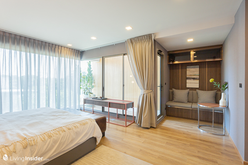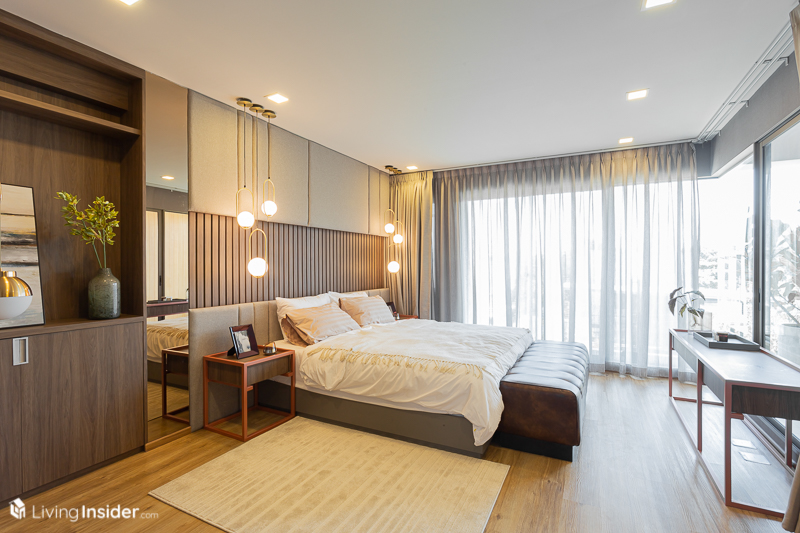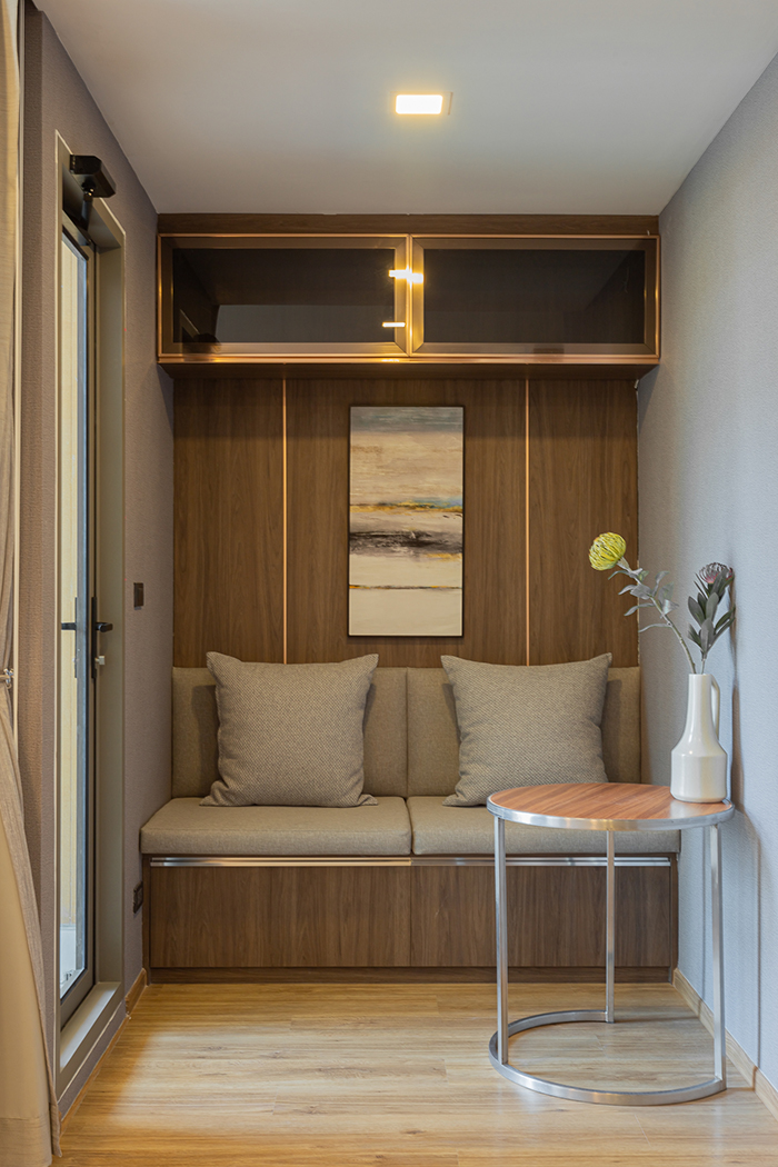 โดดเด่นด้วย ช่องแสงกระจกยาวเต็ม 2 ผนัง แบบ Bay Window ขนาดใหญ่ ทำให้รับแสงธรรมชาติและเห็นวิวภายนอกได้อย่างชัดเจน อีกทั้งยังทำให้ห้องดูโปร่งกว้างอยู่แล้วไม่รู้สึกอึดอัด