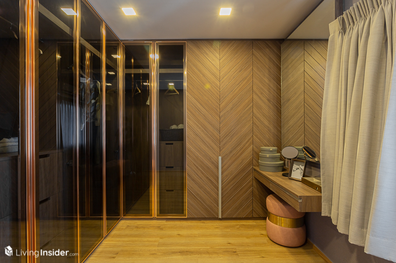 เมื่อเดินไปอีกฝั่งหนึ่งทางด้านหลังบ้านเจอ Walk-in Closet ขนาดใหญ่ เหมือนกับเป็นอีกหนึ่งห้องไปเลย เหมาะอย่างมากกับคนที่มีเสื้อผ้าเยอะ ตรงกลางวางไอส์แลนด์ไว้สำหรับใส่ Accessory เครื่องประดับต่างๆ และแน่นอนว่ายังคงคอนเซ็ปต์ มีช่องแสงเพิ่มความสว่างให้แก่ห้องเช่นเดิม