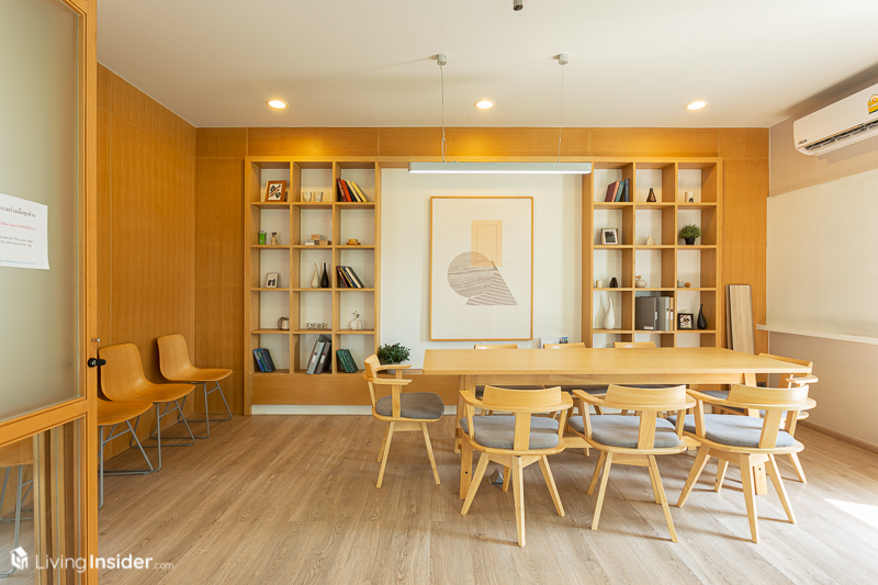 ส่วนชั้นสองจะเจอกับ Co-Working Space มีโต๊ะขนาดใหญ่สำหรับ 8 ที่นั่ง วางไว้ให้นั่งเล่นหรือทำกิจกรรมร่วมกับเพื่อนบ้านคนอื่นๆ