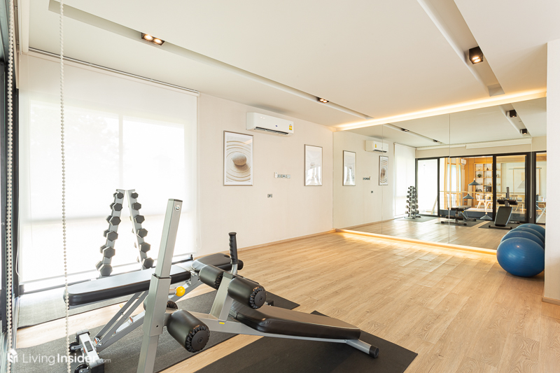 ในชั้นเดียวกันก็มี ฟิตเนส ขนาดค่อนข้างใหญ่ มีเครื่องออกกำลังกายหลายเครื่อง สามารถออกได้ครบทุกสัดส่วนของร่างกาย