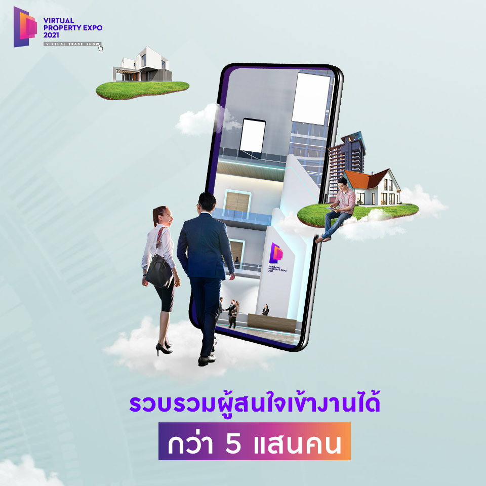 เพียงคลิกเดียวเข้าร่วมงาน “Virtual Property Expo 2021” แล้วคุณจะได้รับประสบการณ์ใหม่ๆ ที่เข้าถึงง่าย สะดวก รวดเร็ว ครบครัน ที่ไม่ว่าจะใช้บนมือถือ Tablet และคอมพิวเตอร์ก็รองรับทุกการใช้งาน ให้สามารถซื้อขายได้ทุกที่ทั่วประเทศไทย ซึ่ง ณ เวลานี้คงหาจากที่ไหนไม่ได้อีกแล้ว