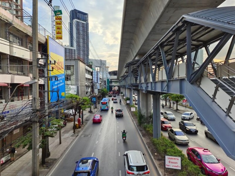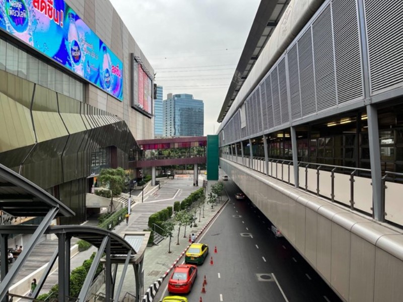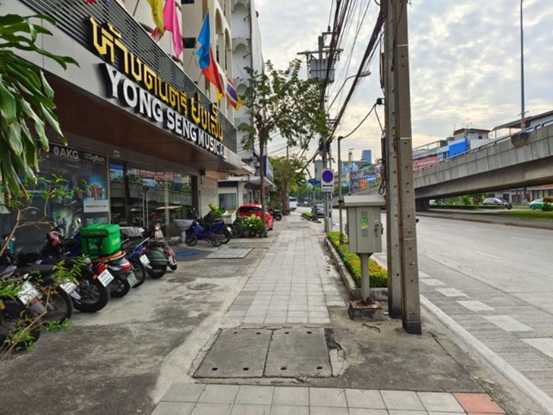 รอบด้านเป็นย่านการค้าดั้งเดิมอาคารพาณิชย์ 4 ชั้น + อาคารสำนักงาน บางส่วนปรับปรุงทำ Hostel, Cafe ต้อนรับนักท่องเที่ยว ข้ามสะพานลอยมีร้านอาหาร, 7-Eleven ถือว่าคึกคักใช้ได้ อย่างร้าน ‘เมาเซ’ ข้าวต้มรอบดึก เปิดมาเกิน 30 ปีแล้ว - ร้านภาพร ซาลาเปา เป็นเจ้าเก่าแก่เช่นกัน