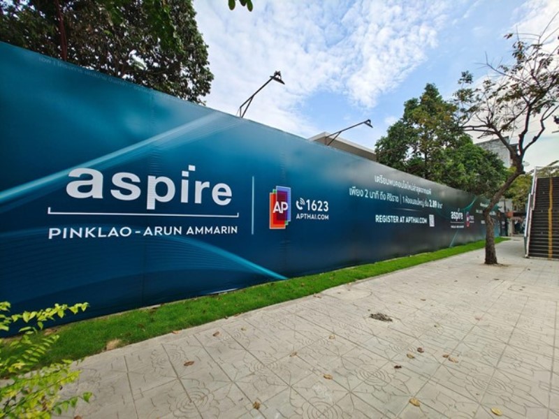 พื้นที่โครงการ Aspire ปิ่นเกล้า - อรุณอมรินทร์ ติดคลองบ้านขนมจีน เข้าผ่าน ถ.อรุณอมรินทร์ (ตามภาพ) โดย Sale Gallery ทาง AP Thailand ตั้งด้านหน้าทางเข้าโครงการ กำลังก่อสร้างพอดี ยูนิตน้อยเพียง 396 ยูนิต แบ่งเป็นอาคาร Low-Rise 5 ชั้น 2 อาคาร พร้อมส่วนกลาง