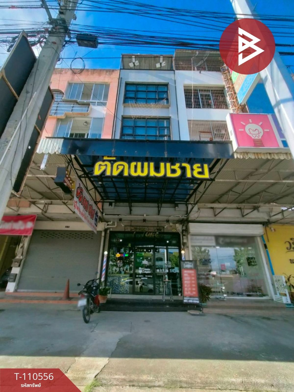 For sale: 4.5-storey commercial building, 3 units, on the main road, at the entrance to Soi Jai-ue, opposite the Saem Suk factory, Pathum Thani. Very good location, suitable for business.